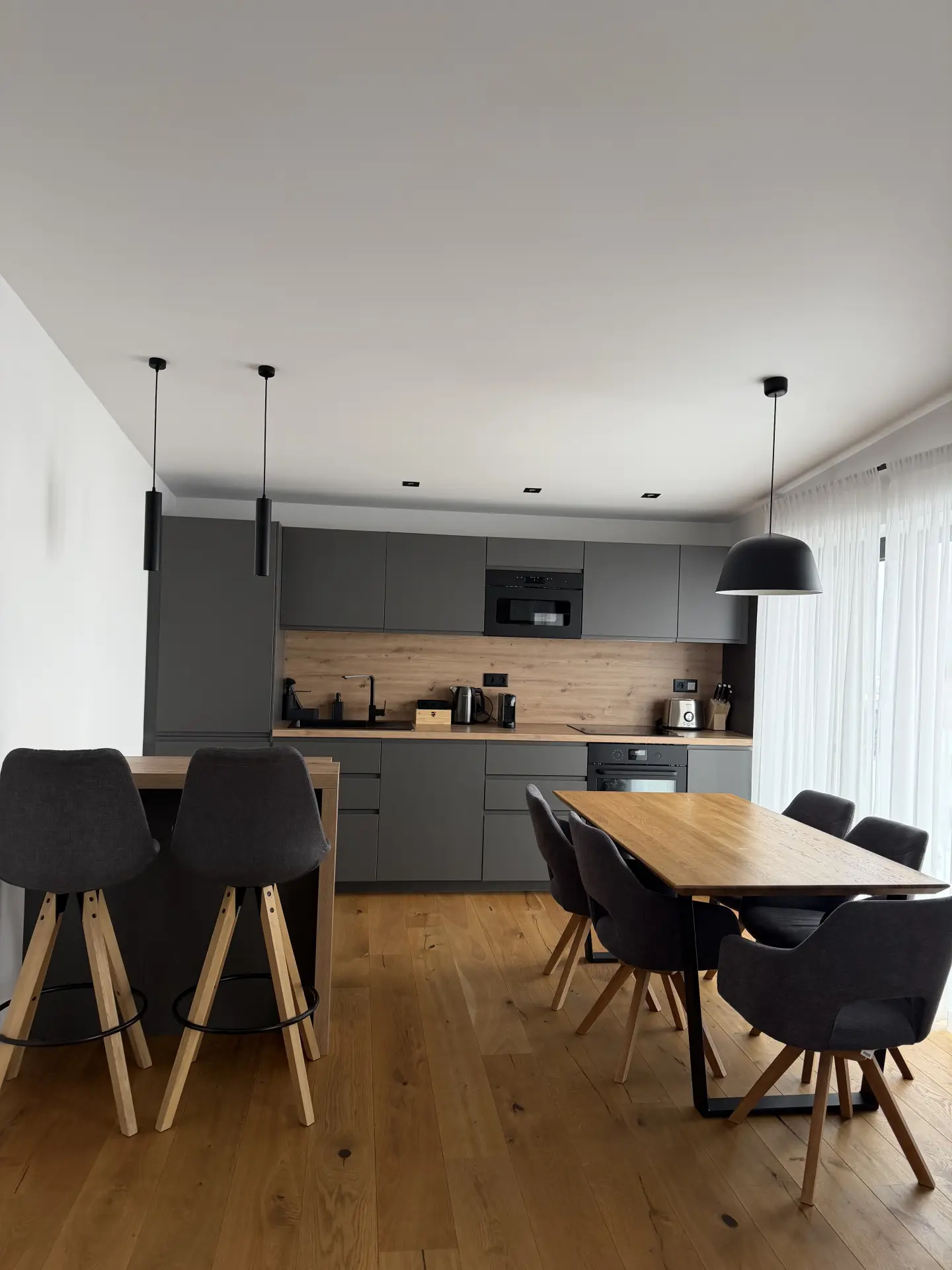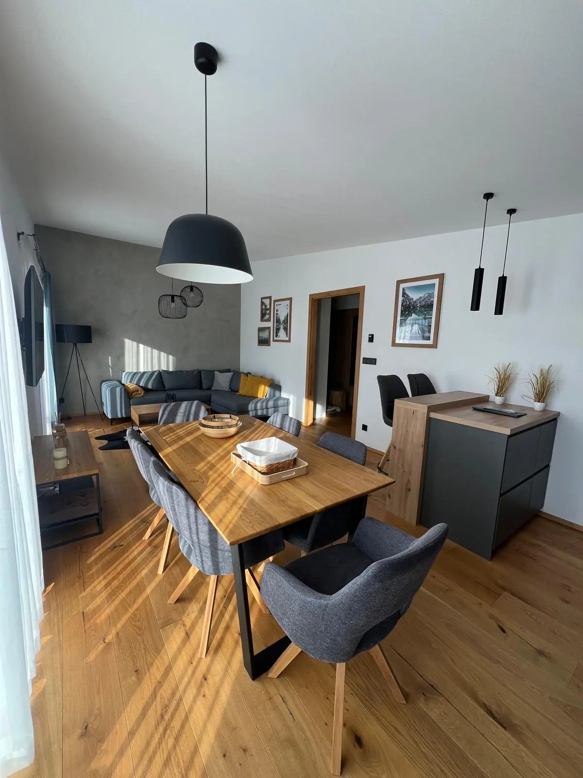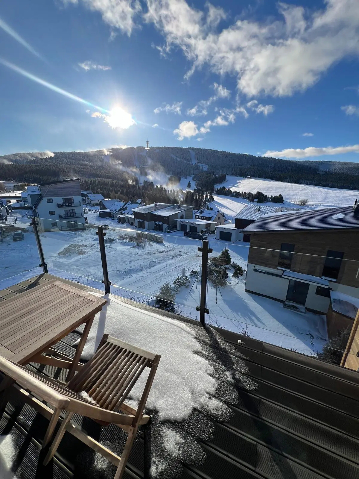 Prostorný apartmán ve 3. poschodí se 2 ložnicemi a balkónem s úchvatným výhledem .